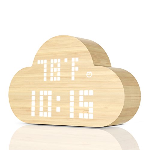 -. Title : Plus-dot 置き時計 目覚まし時計 音声感知 USB給電 時間表示 温度湿度表示 LED 3段階光度調節 デジタル 省エネ 木目 木製 インテリア おしゃれ ナチュラル かわいい シンプル プレゼント