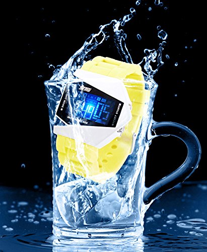 -. Feature : Inspired by airplanes, this Stealth Fighter Warplane Dial LED Sports Wrist Watch is perfect for those young and adult. / 50M Waterproof, 5ATM / It has 5 different LED back light for you to choose / The watch also includes an alarm, stopwatch, chronograph, and SPL, giving you tons of features to enjoy / The soft, silicone strap is easily adjustable for a comfortable fit