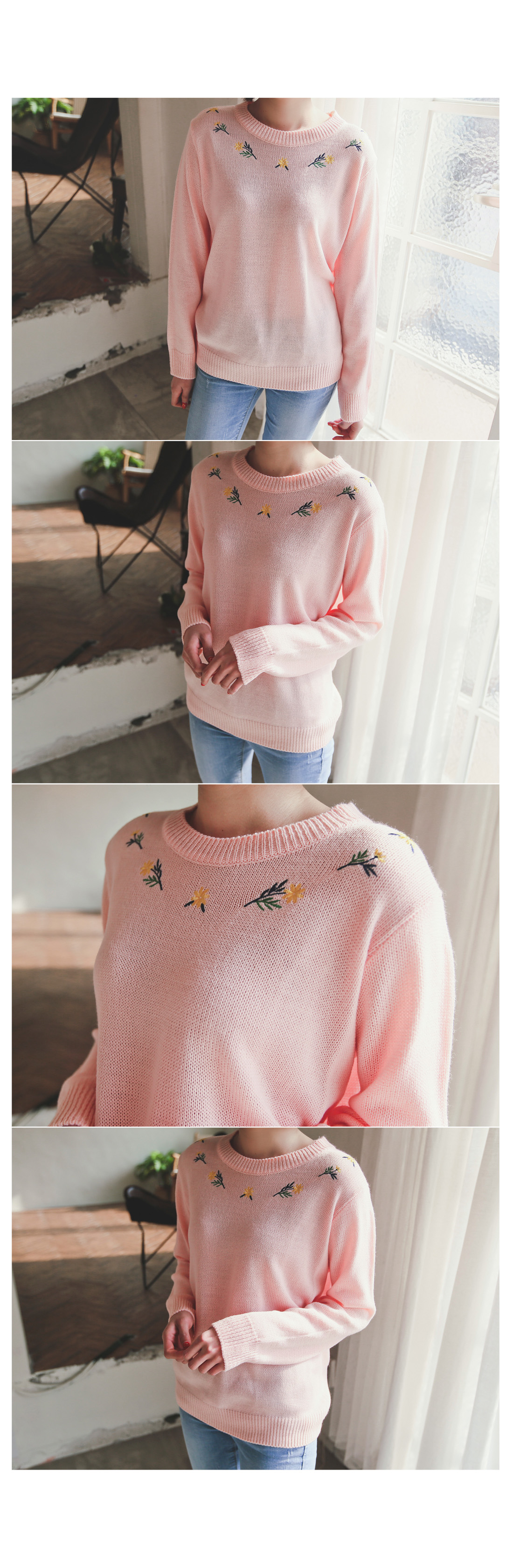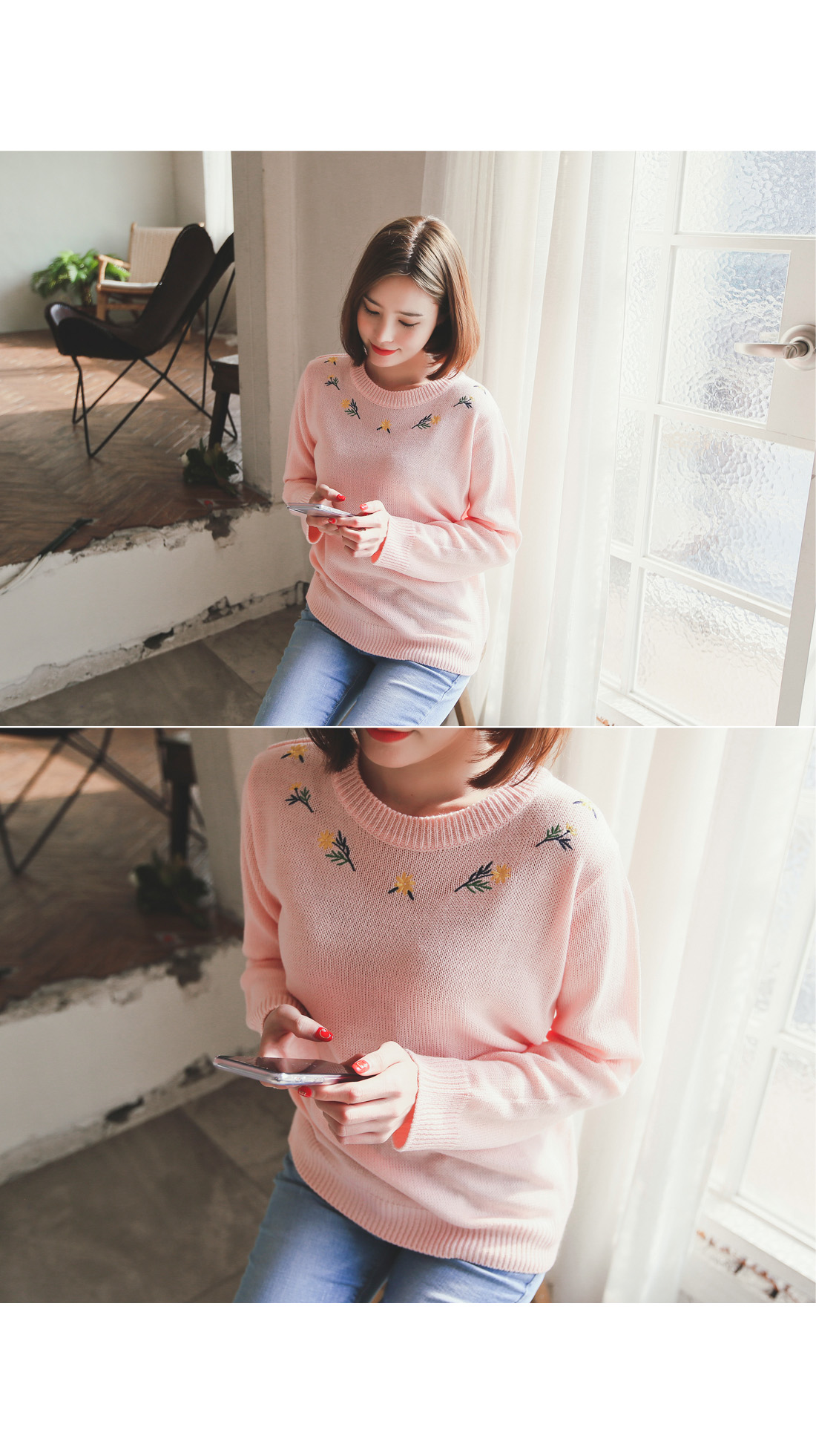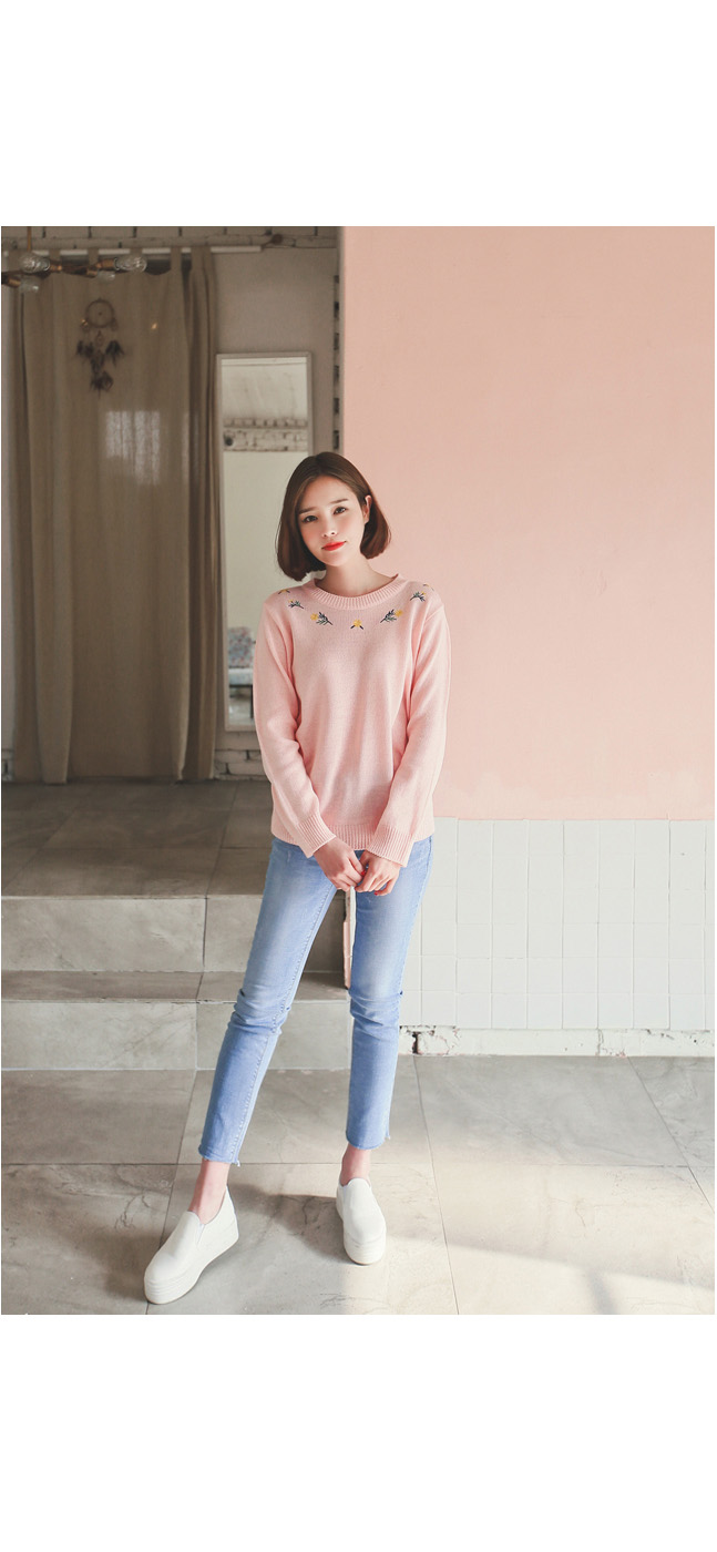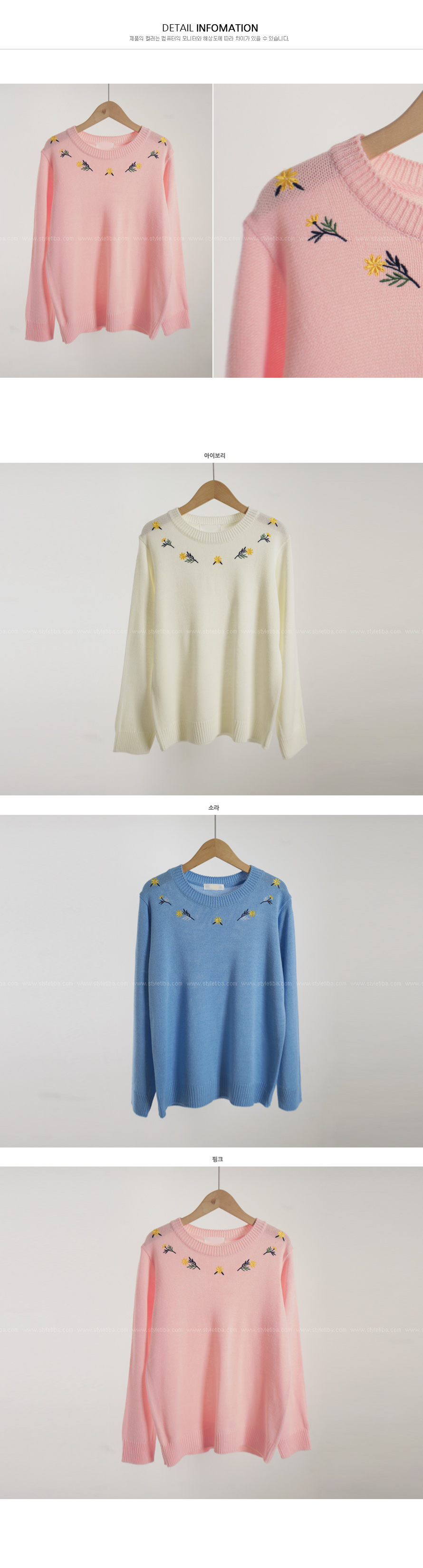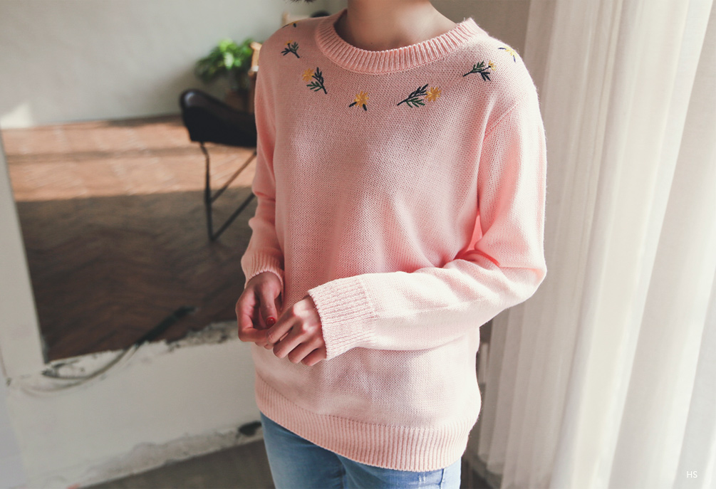 넥라인을 따라 꽃자수가 박혀있어 밋밋한 니트에