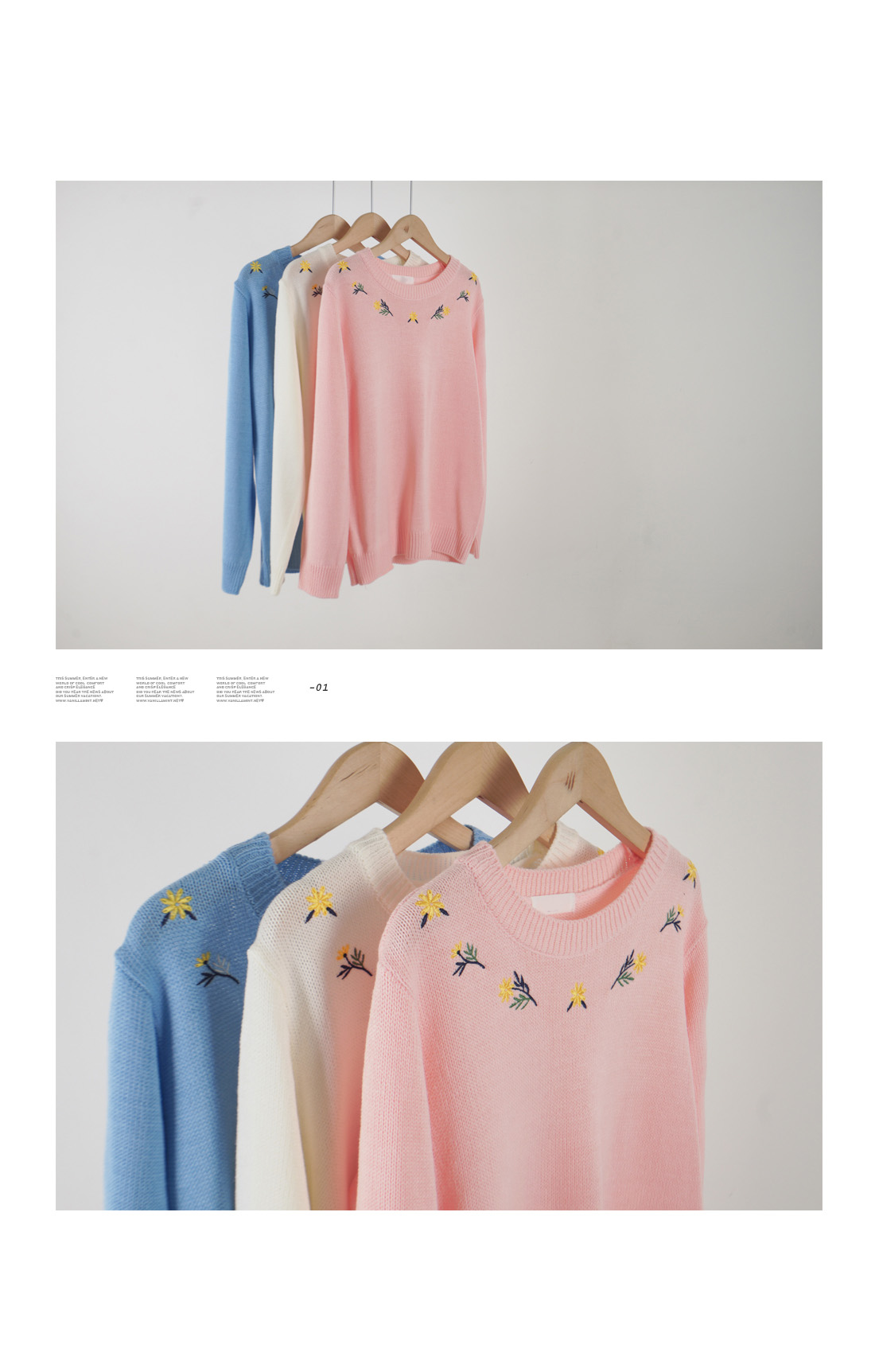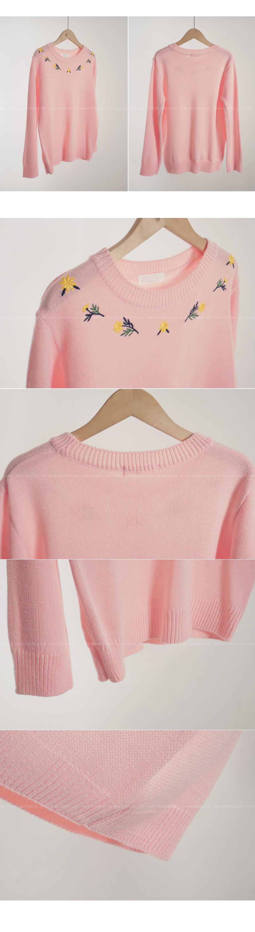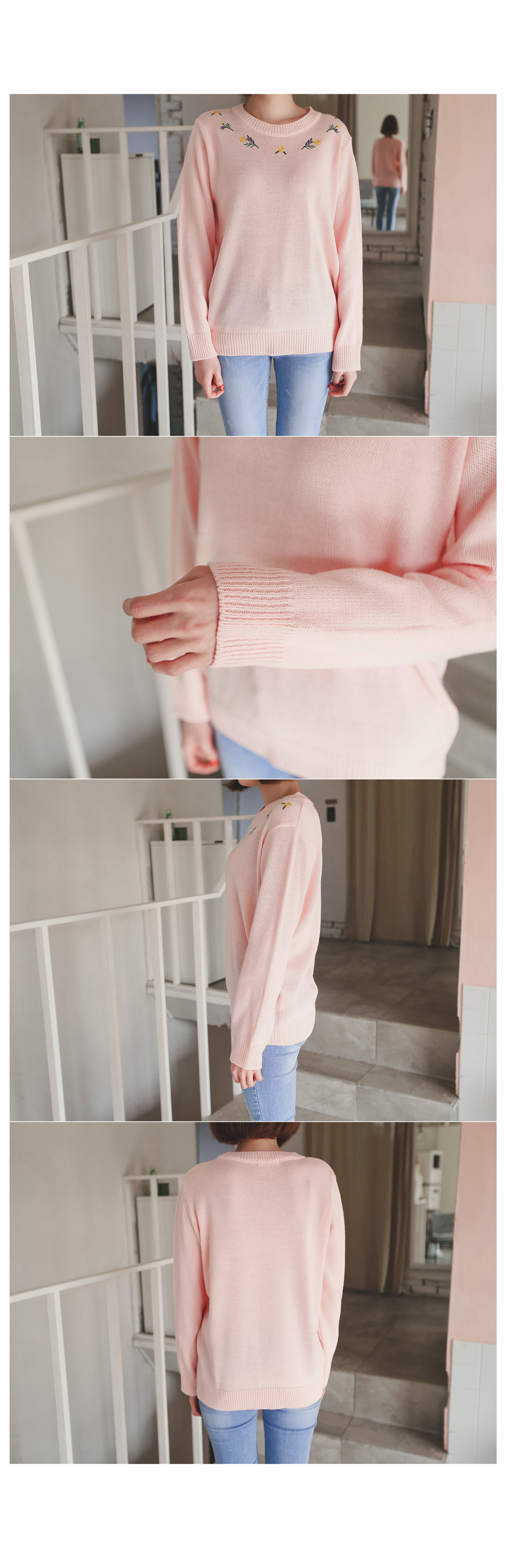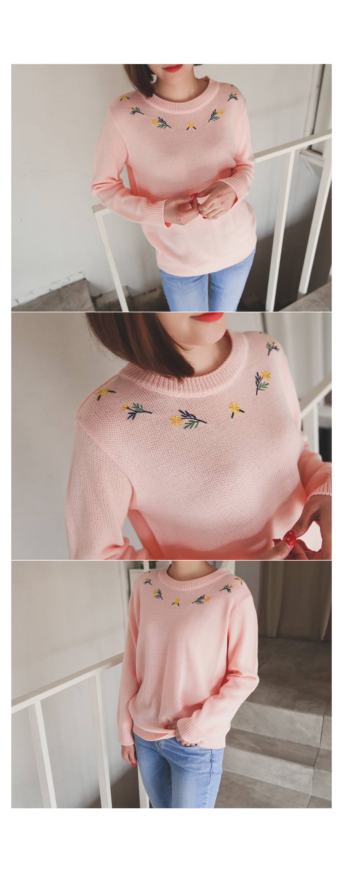 넥라인을 따라 꽃자수가 박혀있어 밋밋한 니트에