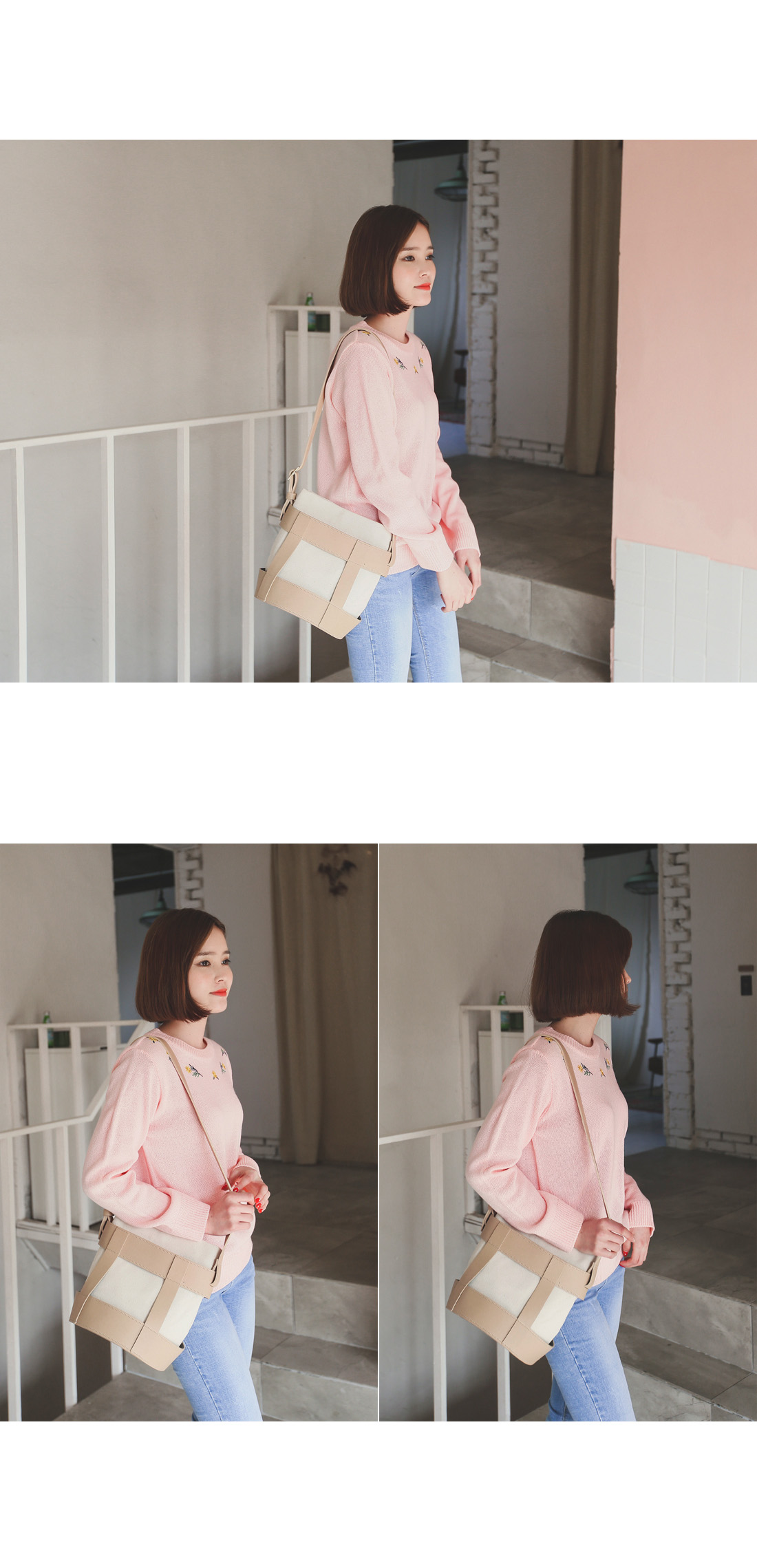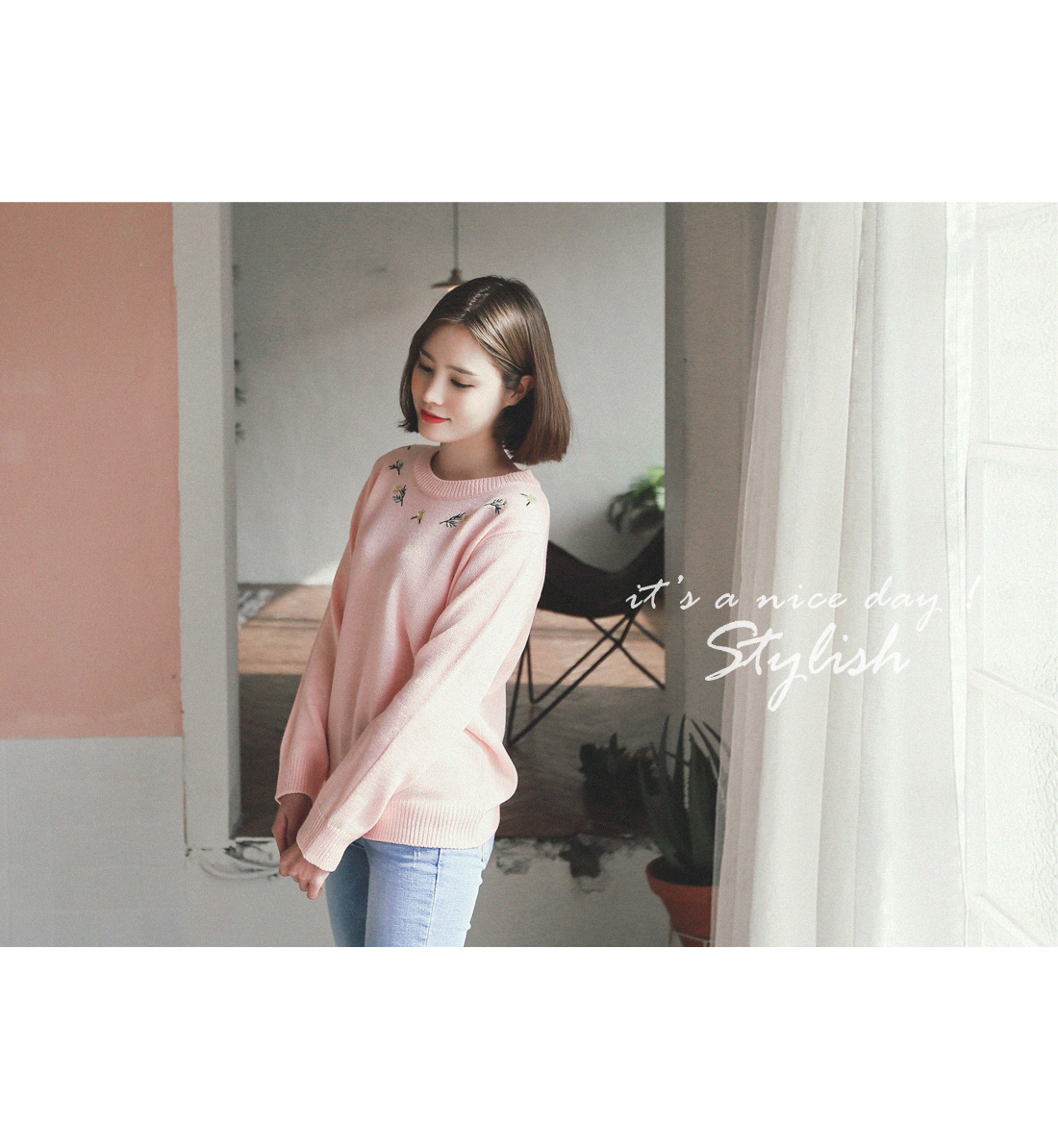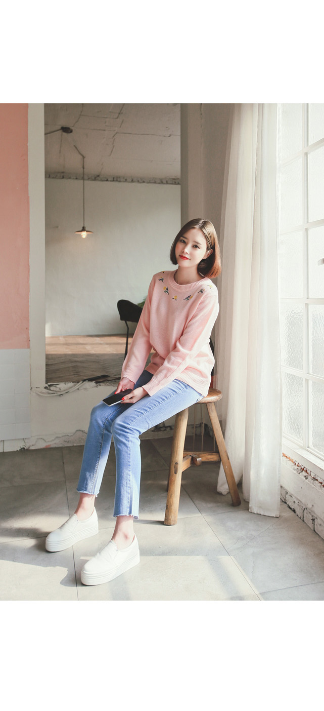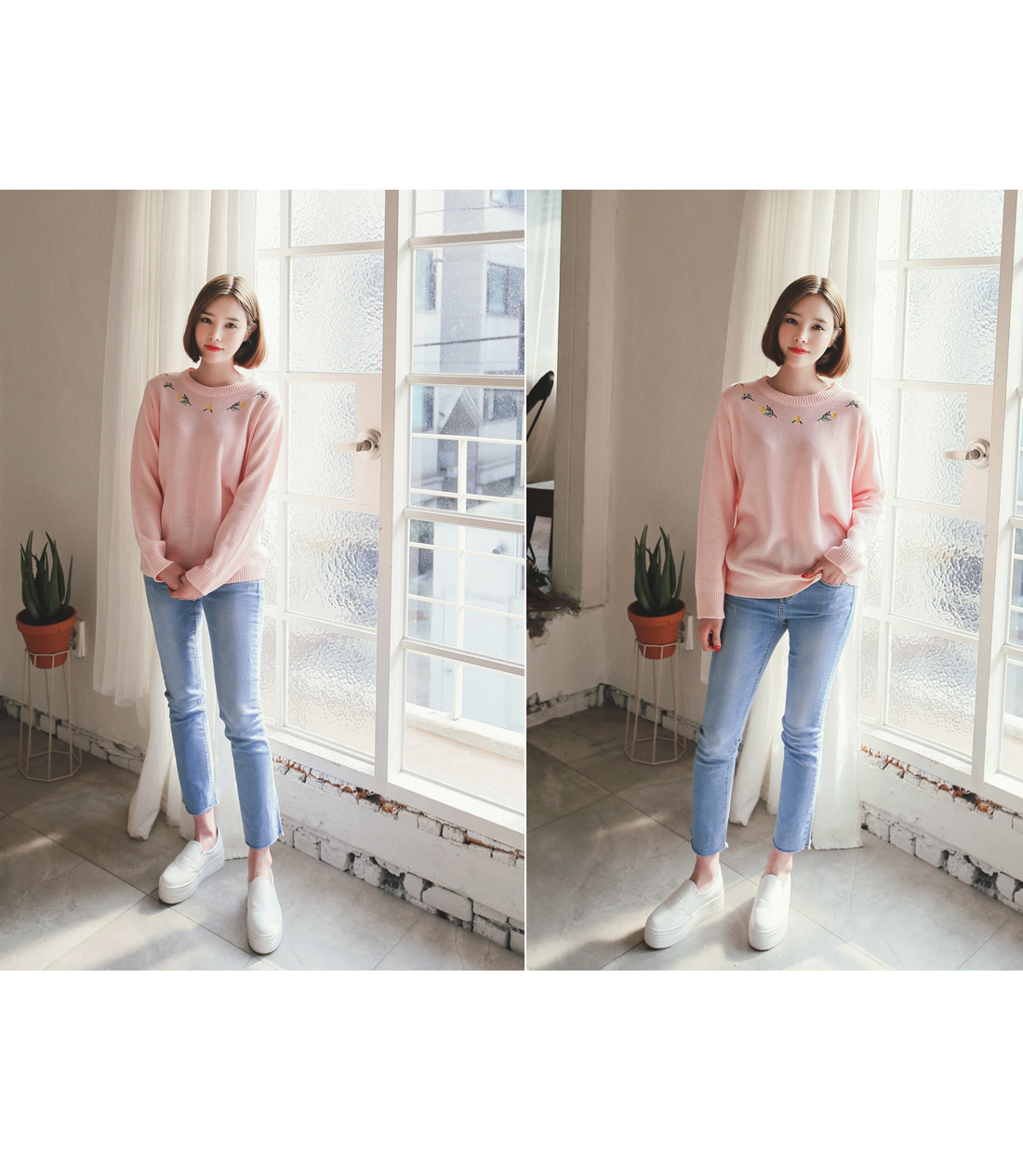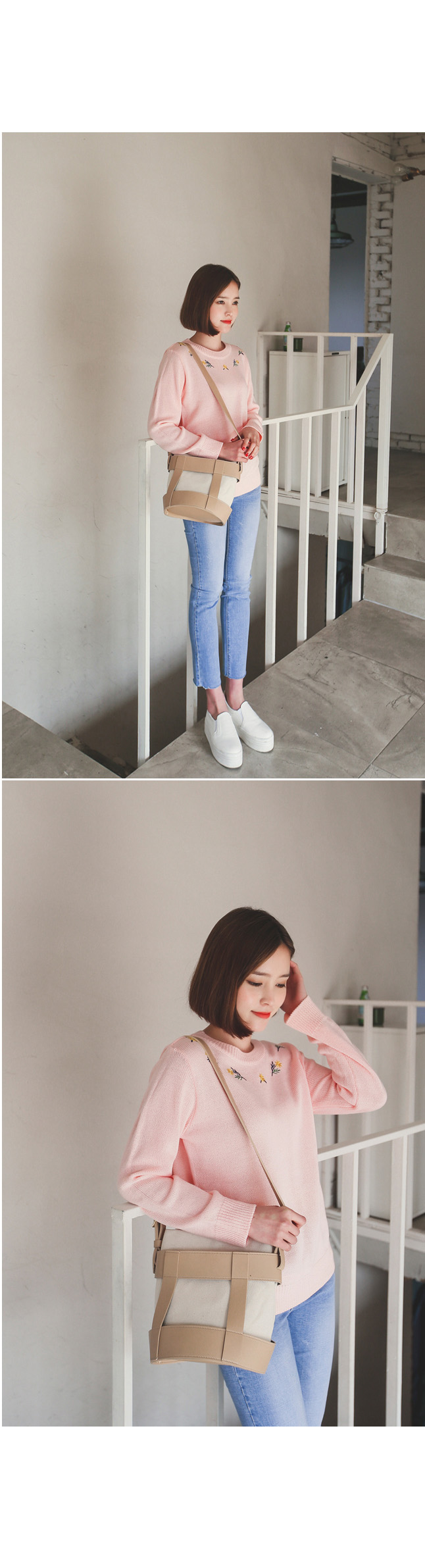 넥라인을 따라 꽃자수가 박혀있어 밋밋한 니트에