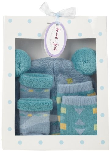 -. Feature : Set includes, 1 hat, 1 pair mittens, 1 pair booties / Available in size 1, 0-12 months / Made with superwash merino wool / Packaged perfectly for gift giving / Easy care, machine washable