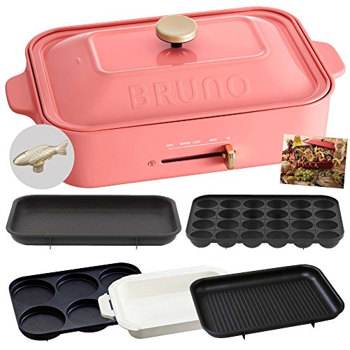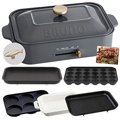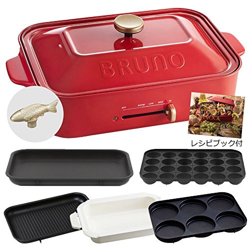 BRUNO 콤팩트 핫 플레이트 + 세라믹 코트과 + 그릴 플레이트 + 멀티 플레이트 + 레시피(요리처리법) 북 + 데코레이션 노브 피쉬 6점세트