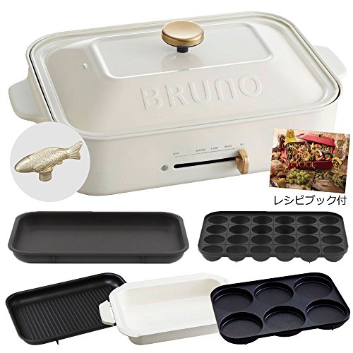 원본상품명: BRUNO コンパクトホットプレ?ト + セラミックコ?ト鍋 + グリルプレ?ト + マルチプレ?ト + レシピブック + デコレ?ションノブ フィッシュ 6点セット