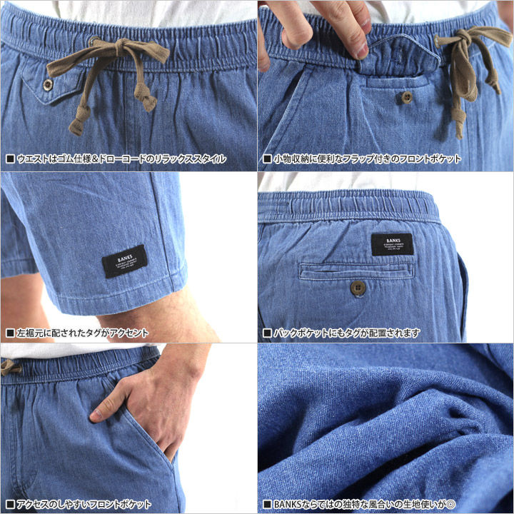 ウエスト周りがバンドになったイージーフィットのハーフパンツ。