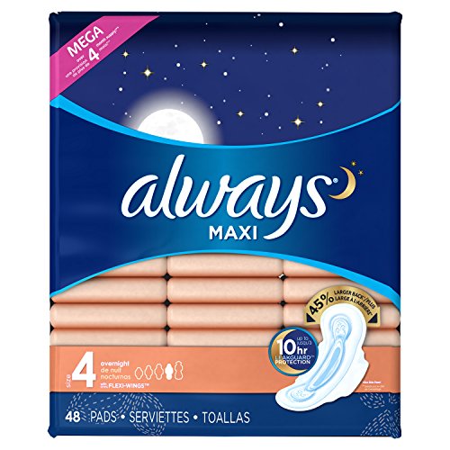 Are you getting the right protection from your pad? Using the wrong pad size can lead to leaks. Step up in size to help stop leaks. Now you can find your fit with Always MY FIT, a tailored sizing system to help you find the best protection based on both your flow AND panty size. Use the sizing chart in the images to find your fit for day and night. For overnight protection, Always Maxi Size 4 Overnight Pads With Flexi-Wings, provide a 45% larger back to help stop leaks at night, plus a LeakGuard Core that absorbs in seconds and gives you up to 10 hours of protection. *Vs. Always Maxi Regular With Wings.Feature