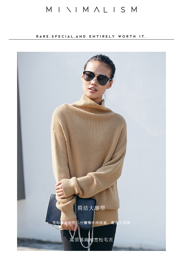 时髦高领与落肩袖,美化颈、肩、臂线条,温暖舒适又有型。