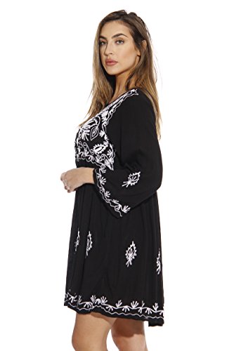SLIP INTO SUMMER CHIC: Look effortlessly stylish under the sun in this embroidered tunic dress. It features a wide scoop neckline, brass-colored buttons, loose long sleeves, and swirly embroidered patterns that all give a feminine touch to this sweet and sassy outfit.