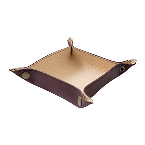 -. Feature : PERFECT FOR KEYS, CHANGE, PERSONAL ITEMS: This rustic, handcrafted Valet Tray is the perfect home for dumping your keys and spare change when you get home from a busy day. No more wasting time searching through the house for your car keys when you have this attractive Valet Tray to store them by your front door. / RUSTIC BRASS METAL SNAPS: The Valet Tray clips together with sturdy, heavy duty Brass Metal Snaps that firmly hold the corners in place and won't come apart unwillingly. Once clipped together, the space within the Valet Tray measures at 4.5 inches by 4.5 inches. / HANDMADE WITH THE FINEST MATERIALS: The Full Grain Leather that we use is the cream of the crop, the best leather around. After usage and time, the Lavender exterior will attain a unique patina showing grace and age. The interior is crafted using Soft Sheepskin, and with its smooth napa finish, gives a silky effect that is both durable, supple, and even water resistant. / SIMPLE AND FUNCTIONAL DESIGN: The Valet Tray is lightweight, durable and matches with any décor around the house. The Valet Tray also works great on your coffee table, or as a bedside storage container for your earplugs, cell phone, or in the bathroom for your small toiletries, lotions, etc. / MAKES A GREAT GIFT: This rustic yet elegant Valet Tray makes for a great housewarming gift, and is sure to appeal to any and all tastes. Perfect gift idea for your friend or loved one who constantly misplaces their keys. Now, when you ask, "where did you see them last?" it will be "Oh, yeah, in the Valet Tray." Save time and arguments with this neat little product.