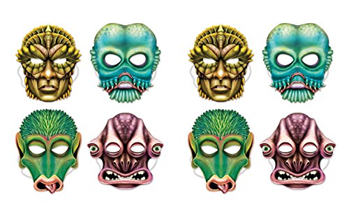 Beistle 60045 8Piece Alien Masks, 11.25" to 12.25", , Multicolored