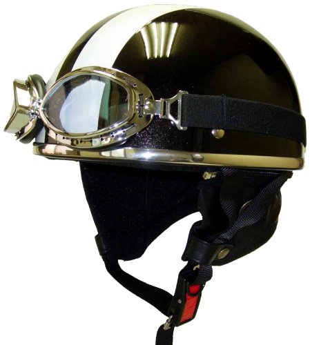 원본상품명: 川村商店 ヘルメット ゴ?グル付ビンテ?ジヘルメット メタリックブラックアンドホワイト フリ? VH-55G