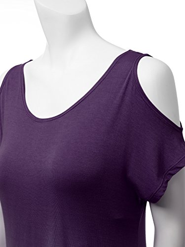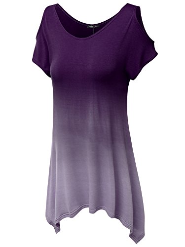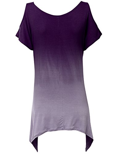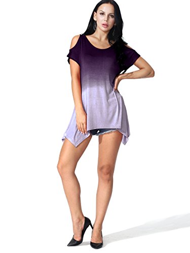 Prime Hot JayJay Women U-neck Cold Shoulder Short Sleeve Tie Dye Print Tunic Top,PURPLE,S