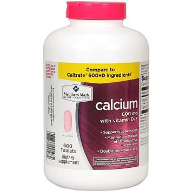 -. Binding : Health and Beauty -. Brand : Members Mark -. EAN : 3085349276290 -. Feature : Supports bone and colon health / May reduce the risk of Osteoporosis (see panel) / May reduce the risk of Osteoporosis* / Supports colon health* / Supports bone health* -. IsAdultProduct : 0 -. Label : Member's Mark -. Manufacturer : Member's Mark -. MPN : 3U461 -. PackageQuantity : 1 -. PartNumber : 3U461 -. ProductGroup : Health and Beauty -. ProductTypeName : HEALTH_PERSONAL_CARE -. Publisher : Member's Mark -. Studio : Member's Mark -. Title : Member's Mark 600 mg Calcium + D3 Dietary Supplement (600 ct.) -. UPC : 769033081102