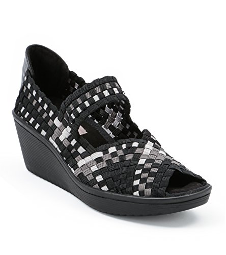 Umma is from the Woven Stretch Collection. This open-toe mary-jane wedge has a sporty flair with comfy wear! The padded insole provides cushioning for every step in your active day. . Wear with your favorite skinny jeans or a short, favorite tee & a fun jacket! Umma is a "must have" for the fashionista who loves versatile wear with a sport-savvy flair!