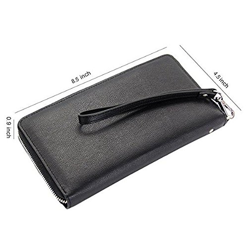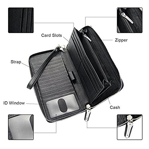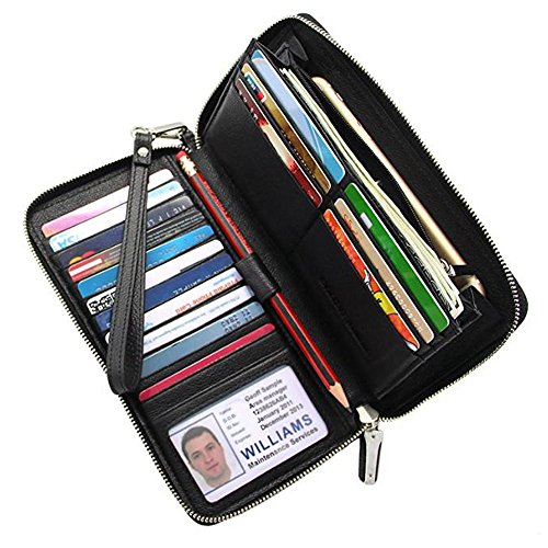 Binding : Apparel Product Description New Arrival: Women RFID Blocking Large Wallet Genuine Leather Zip Around Wallet Travel Purse Size : Please refer to the image Color : Black Material :Genuine leather Safety, Privacy and Security - Our wallets are equipped with advanced RFID Secure Technology, It effectively protects your valuable data, Block RFID Readers from Scanning Your Credit Cards, Debit Cards, ID Cards and other RFID Cards. Travel Wallet RFID - RFID wallets for women, oil wax leather and RFID blocking material.1 zipper pocket for change and coin,1 ID window with central cut out over,17 credit card slots, 2 currency pockets, one pen loop, this wallet is suitable for cash, coins, cell phone like as iphone7 plus, passport, pen, checkbook and removable wrist strap. Carry Around Easily - Our Women's Zipper Wallet with a removeable wrist strap, it allows you to easily carry it in hand-wrist or put it in bag. You can use it as a clutch wallet when you don't want to take a handbag. Perfect for using when going out, shopping or any other daily occasions. 0