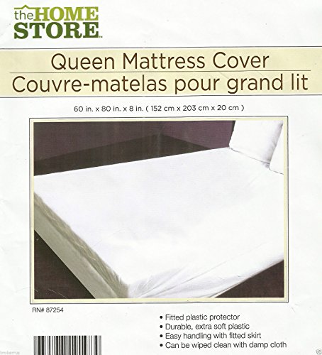 -. Feature : Size: Queen / Material: Stay Soft Plastic / Dimensions: 60"x80"x8" slightly larger than queen fitted sheet / Wipes Clean with damp cloth / 1 piece plastic mattress protector