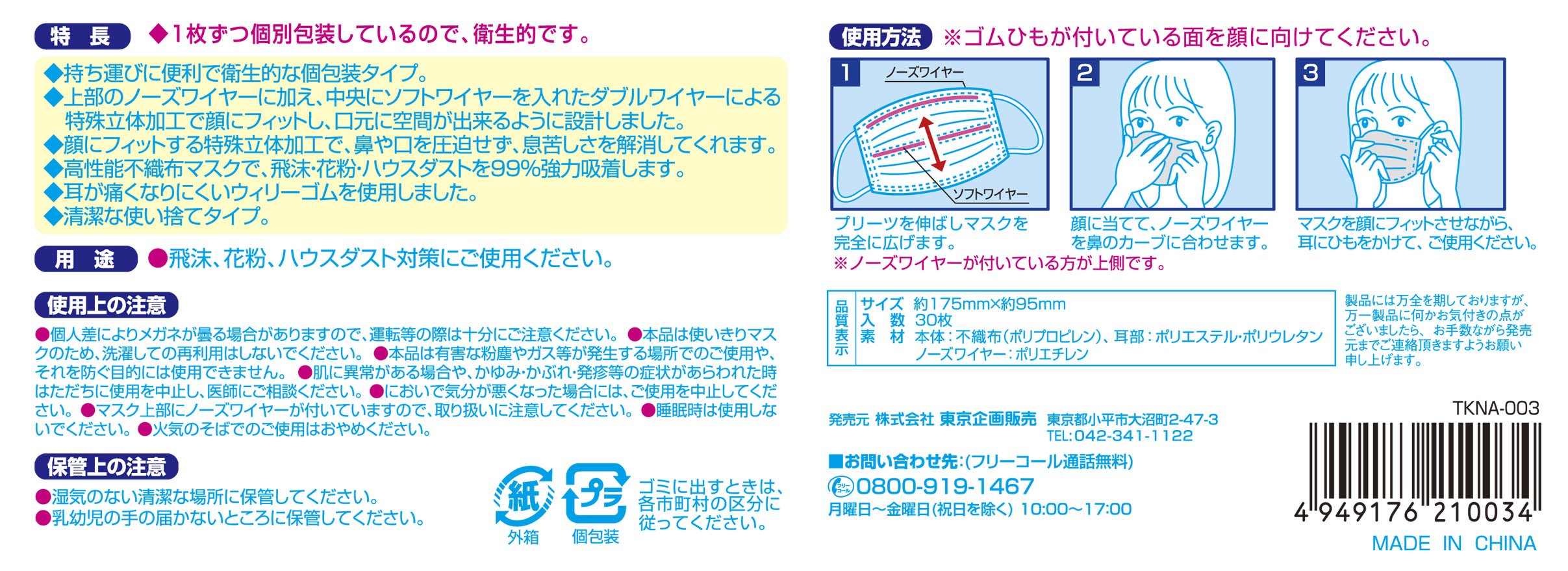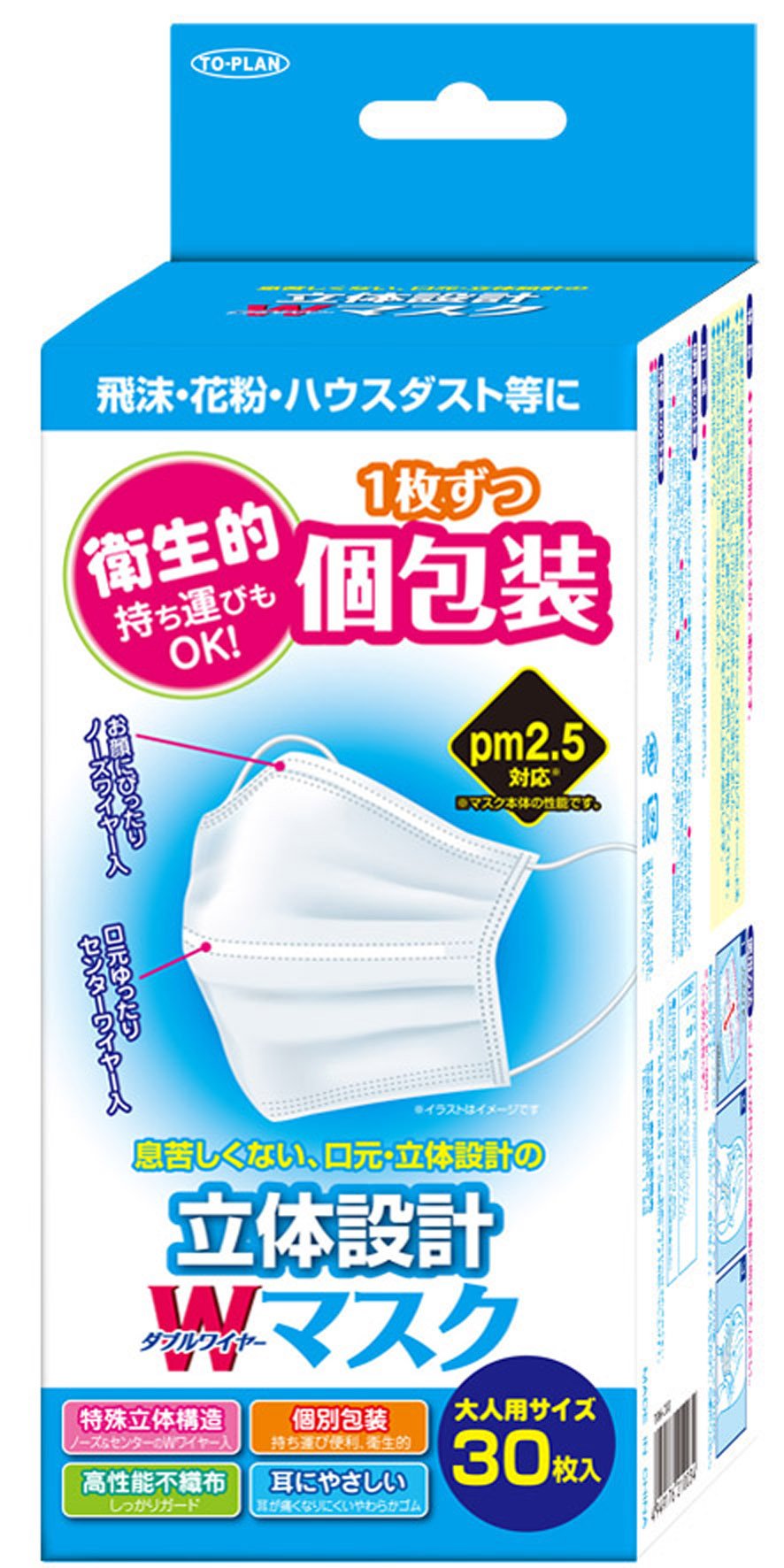 Topuran three-dimensional design double wire mask for adult size 30 pieces