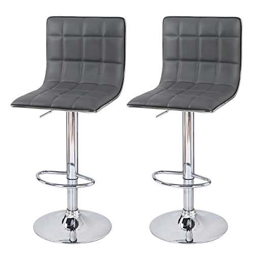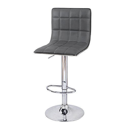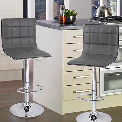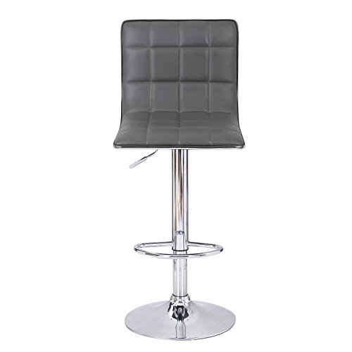-. Title : Adeco Hydraulic Lift Cushioned Adjustable Swivel Counter Barstool with Square Pattern - Dark Grey Synthetic Leather Covered - Adjustable Height 23.6-31.5 Inch - Set of 2