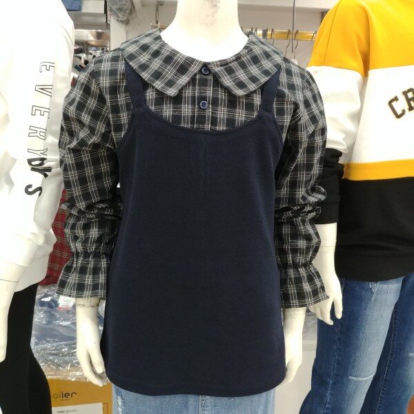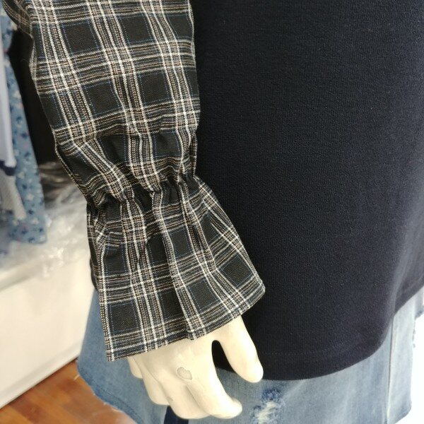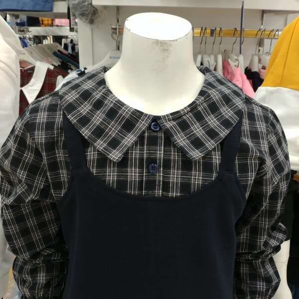 가을 분위기 물씬 나는 체크 카라 뷔스티에입니다.레이어드 디자인이라 편안하면서도 심플함이 돋보입니다.바지에든 스커트에든 잘 어울립니다.