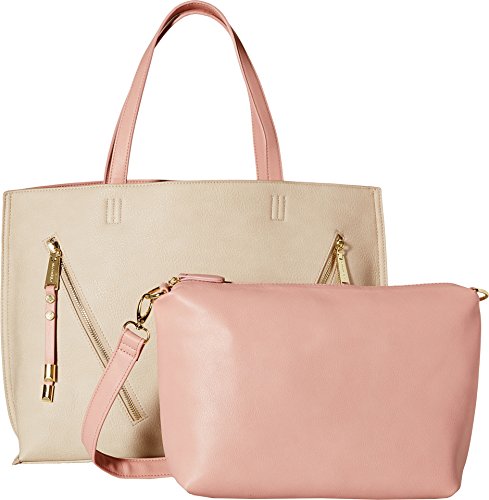 -. Brand : Steve Madden -. Color : beige -. Department : womens -. Feature : Made in USA or Imported -. ProductGroup : Shoes -. ProductTypeName : HANDBAG -. Title : Steve Madden Women's Bqueenie Magnetic closure. Dual flat carrying handles. Tote comes with a crossbody bag with a zipper top closure. Lined interior feathers a back wall zip pocket and multiple slip pockets. Flat base. Imported.
