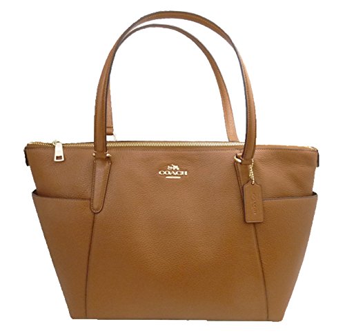 -. Brand : Coach -. Color : Saddle -. Department : womens -. EAN : 0889532147311 -. Feature : 13" X 10" X 5" with 8.5" double shoulder strap drop / full zippered top closure for security / interior nylon liner with zipper pocket 10" X 5.5" and two slot pockets / exterior has two side slot pockets for quick access convenience / beautiful pebbled leather with goldtone Coach metallic logo and leather hangtag -. Model : F37216IMSAD -. ProductGroup : Shoes -. ProductTypeName : HANDBAG -. Size : One Size -. Title : Coach Ava Tote in Pebble Leather Saddle F37216 IMSAD -. UPC : 889532147311 Coach quality leather pebbled and style large tote to carry all your needed items.