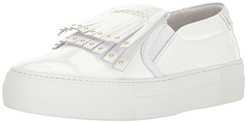 Studio : Just Cavalli Publisher : Just Cavalli Binding : Apparel Product Description This patent leather fringe sneaker is 100 percent calf leather and 100 percent pig leather lining. it is inspired by rock glam and it has gold studding on the fringes. it is made in portugal and it retails for $395. it is a very casual, sportswear look and can be worn dressed up or down. 0