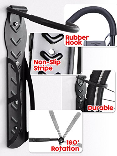Zone Tech Bicycle Rack Wall Mount - Classic Black Premium Quality Bike Hook Rack for Indoor Storage System ? The Zone Tech Bicycle Rack Wall Mount is a Small Investment that will go a long while. Its Affordable price combined with its Sleek look, Safety features and premium quality makes it a "Must Have" for cyclists and bike owners. ? The Zone Tech bike rack is constructed out of Premium Quality strong metal so it will be Durable, Sturdy and Long Lasting. It is Strong enough for MTB road bike, folding bike,kids bike etc. It has maximum load capacity of 60 lb that will surely not bend. The bike rack is also built with molded rubber guards on the hook to Protect the bike rims and tire from scratching. ? The Zone Tech bike rack Easy to Install and will keep your bike upright and out of the way. Simply drill and screw the rack in place, no assembly required. The rack is great for Space Saving as it only takes up minimal amount of space yet gives you full bike storage capacity. It is a Great Storage for those who owns a bike or two. Zone Tech Brand is known worldwide with superior product quality and service! 0 |