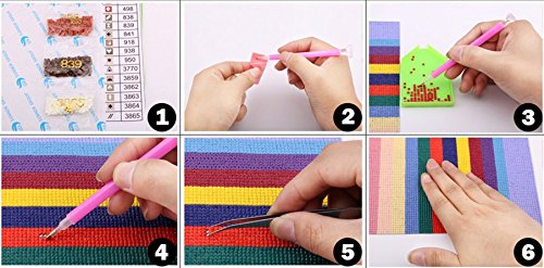 Diamond painting kit item includes: oil painting canvas,diamond-cut color rhinestone beads,stone tray and pen tools for sticking the rhinestone beads on the canvas