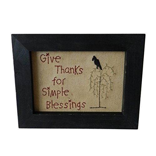 CVHOMEDECO. Primitive Antique Crow on Willow Tree Stitchery Frame Wall Mounted Hanging Decor Art, 9" x 7"