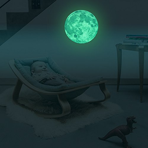 The creative glow in the dark moon wall decal seems like a magic, the unique powder absorbs the natural light and then release in the darkness, it's harmless to our body. The diameter 30cm (11.8 inch) wall decal is made of eco-friendly and waterproof PVC, it’s a great gift for your kids.