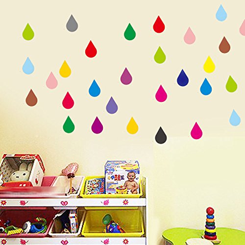 Ferris Store 100pcs Colorful Circles Raindrop PVC Wall Oval Decals Stickers For Baby Children Kid's Room 23.6x16.9"