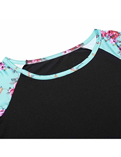 -. Title : OURS Women Casual O-Neck Raglan 3/4 Sleeve Floral P.R.Int Striped T-Shirt Tops