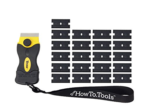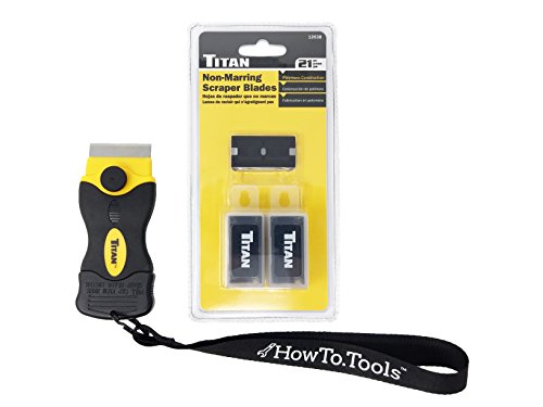 Titan 12031 Mini Razor Scraper with Titan 12038 Non-Marring Plastic Double Edged Razor Blades (21 blades) and Wrist Strap