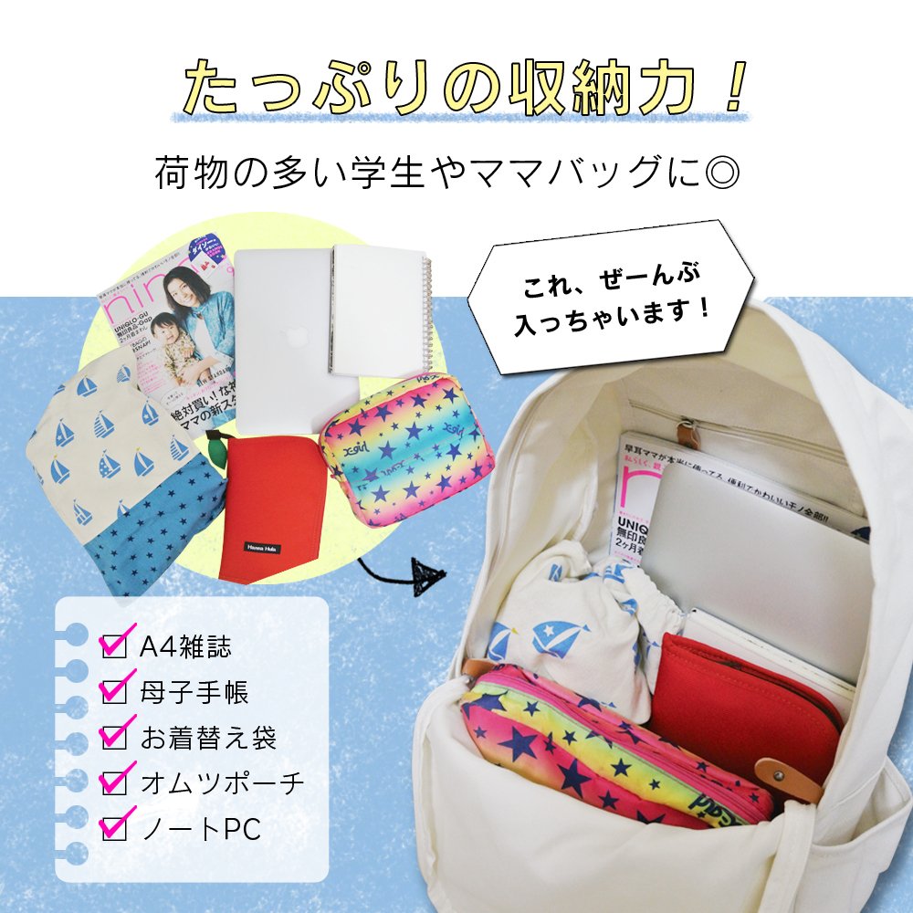 Of course, it is nice to have a diaper pouch, a maternal child notebook, and a change cloth bag as well as A4 size.