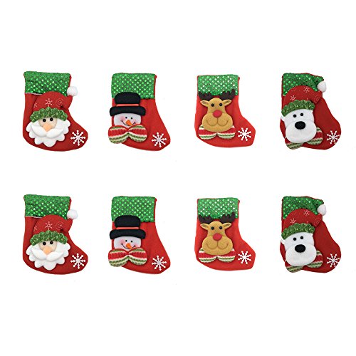 Christmas Tableware Holder - Mini Stocking, 2017 Christmas Cutlery Dinnerware Bag Cover Pouch - Dining Decorations Snowman Reindeer Santa Bear - Sparkle