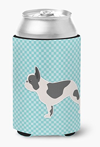 Caroline's Treasures French Bulldog Checkerboard Blue Can or Bottle Hugger BB3741CC, Can Hugger, Multicolor