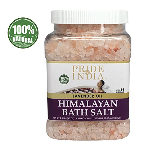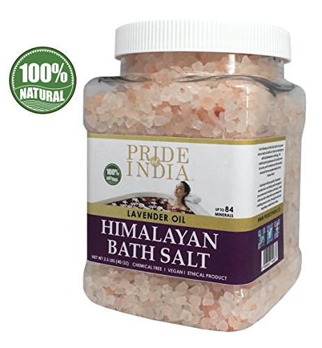 Pride Of India - Himalayan Pink Bathing Salt - Enriched w/ Lavender Oil and 84+ Natural Minerals, 2.5 Pound (40oz) Jar