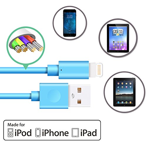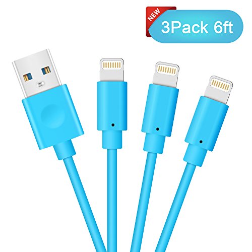 Apple Charger, Avoalre 3pcs 6ft Durable iPhone Lightning Cable for iPhone 7 7plus 6 6s 6 plus 6s plus 5 5s SE iPad iPod-Blue