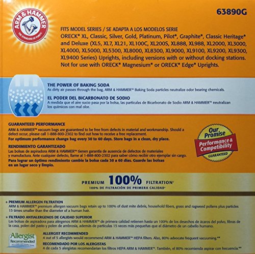 For use in All Oreck XL Upright Vacuums: Including both versions with or without docking stations, including XL7, XL21, XL100C, XL200S, XL888, XL988, XL2000, XL3000, XL4000, XL5000, XL5300, XL8000, XL8300, XL9000, XL9100C, XL9100HG, XL9200, XL9300 and XL9400 Series, as well as the CC bag style