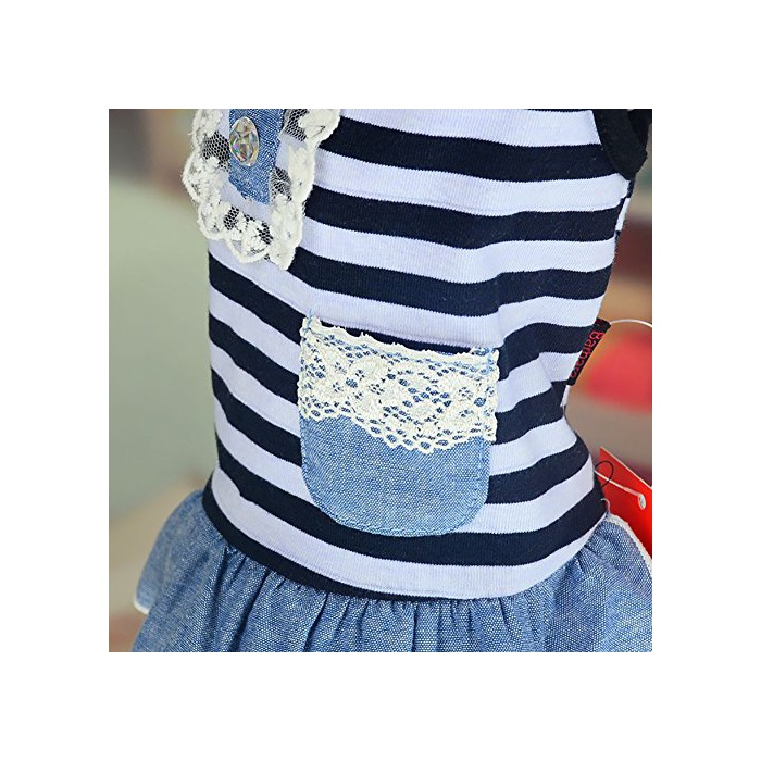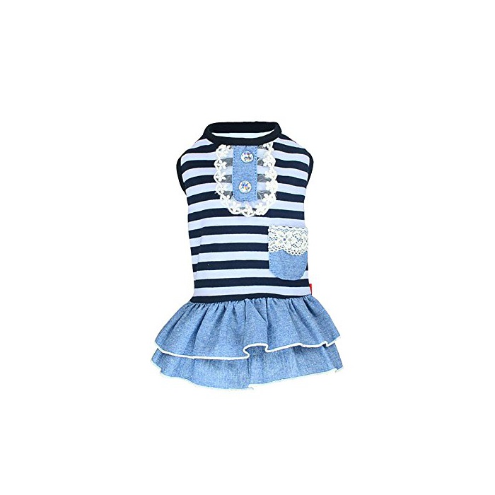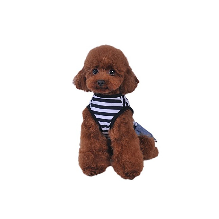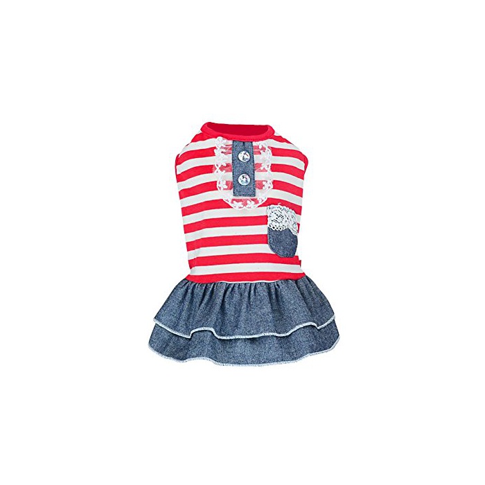 Balai 견용 애완동물 스트라이프복 데님 스커트 보더 셔츠 면춘추 동용복강아지 옷 도그 웨어 소형견 중형견 산책 세트 teddy 도그 웨어 (레드/블랙 5사이즈 선택 가능)