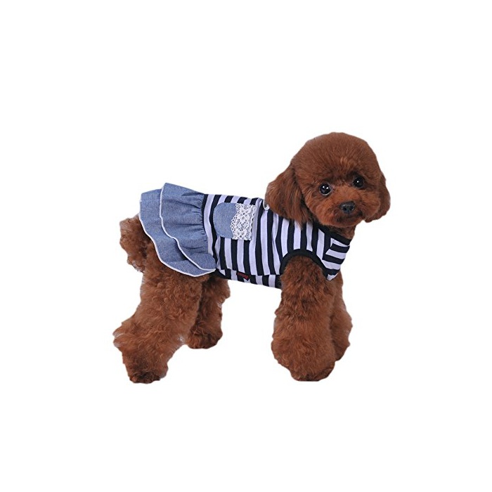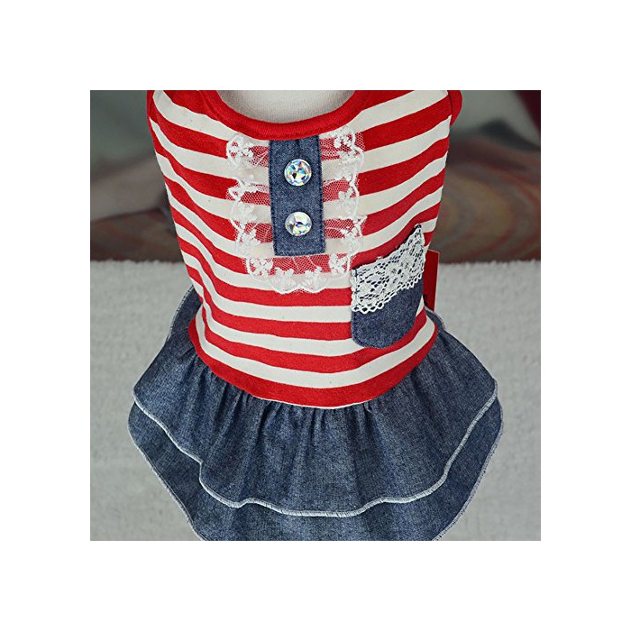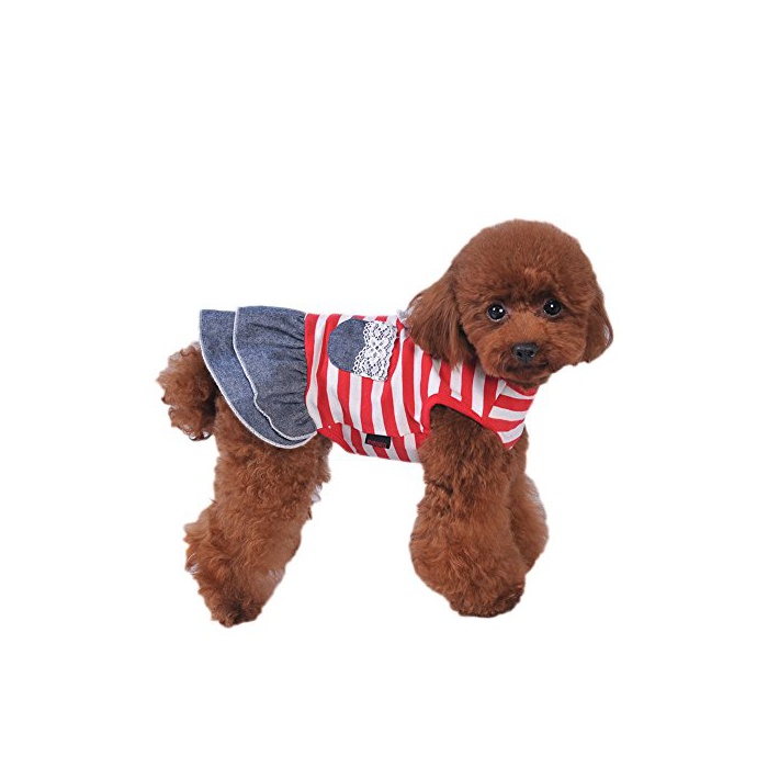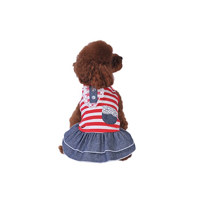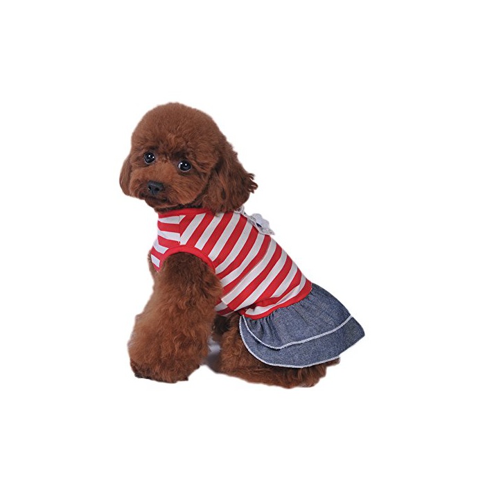 원본상품명:Balai 犬用 ペットストライプ服 デニムスカ?ト ボ?ダ?シャツ 綿 春秋冬 用服 犬の服 ドッグウェア 小型犬 中型犬 散? セットテディ ドッグウェア (レッド/ブラック 5サイズ選?可能)