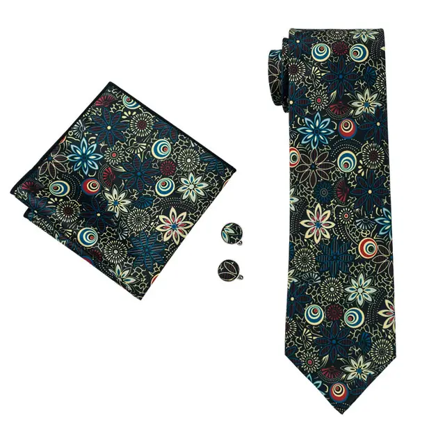 LS-1252 새로운 도착 패션 실크 넥타이 고품질 브랜드 디자인 넥타이 손수건 커프스 세트 웨딩 파티