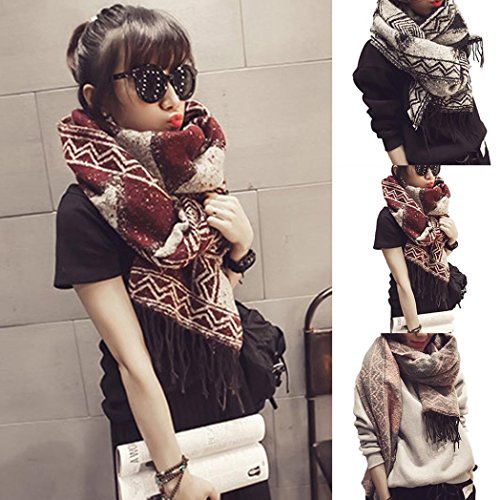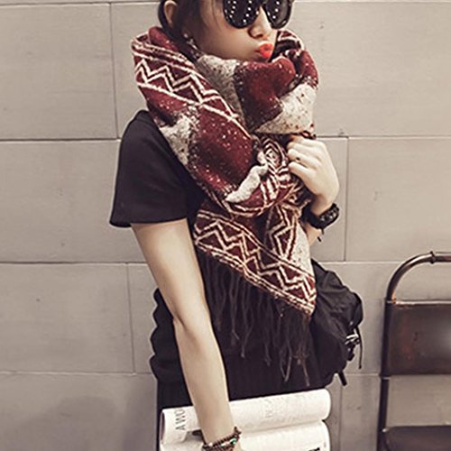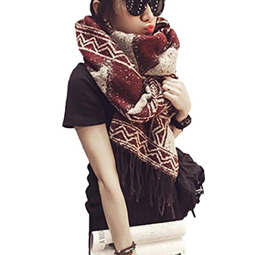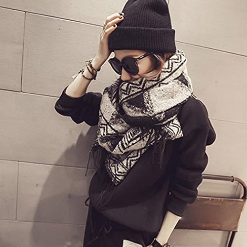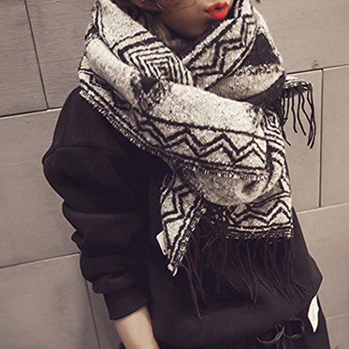 (Brave669)/Accessories/Cold Weather Accessories/DIRECT FROM USA/Womens Elegant Geometric Pattern Tassel Winter Long Soft Scarf Thick Warm Shawl