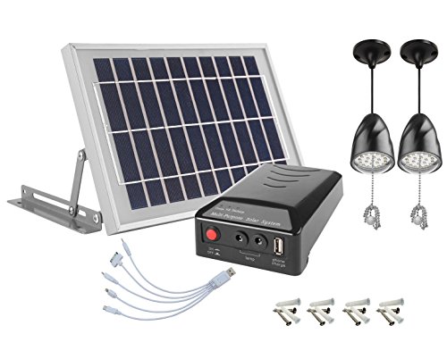 MicroSolar - Lithium Battery - 2X2W LED Lamps - 1 USB - Angle Adjustable Brackets - Solar Home System