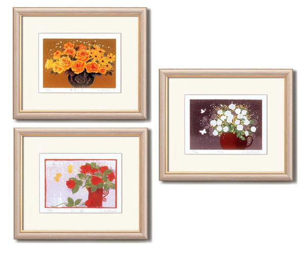 金運・愛情運など花の色に風水の意味が込められており、吉方に飾ると良いとされている風水画です。浩太郎が描く繊細なシルク版画額でインテリア開運して下さい。壁掛け用です。
