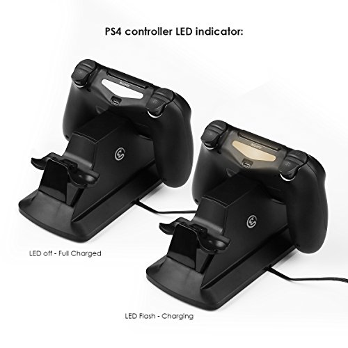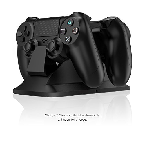 Dual Controller Charger - This sleek and compact dual charger provides an easy and quick way to charge and store your PS4 / PS4 Pro / PS4 Slim Controllers, allowing you to charge up two PS4 controllers simultaneously. Controllers fully charged in 2.5 hours.