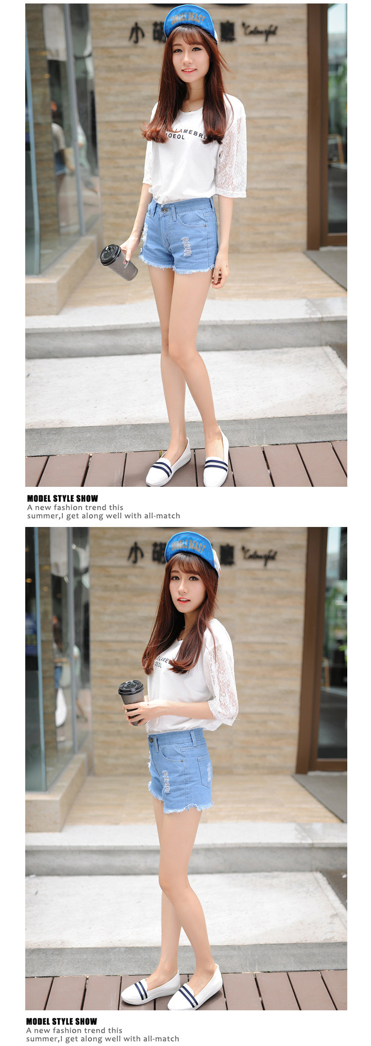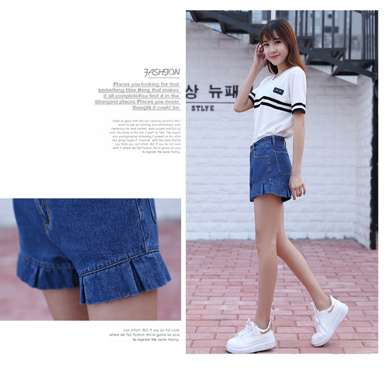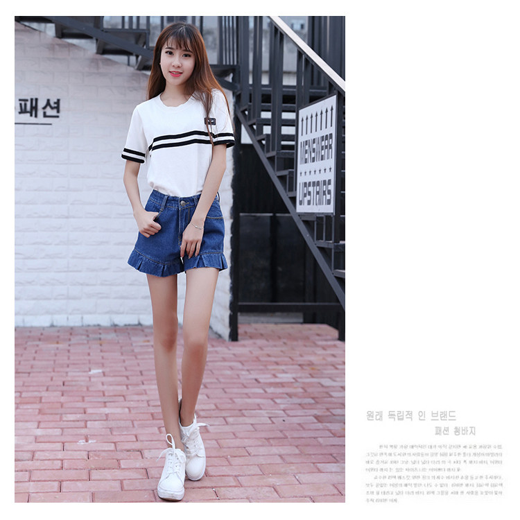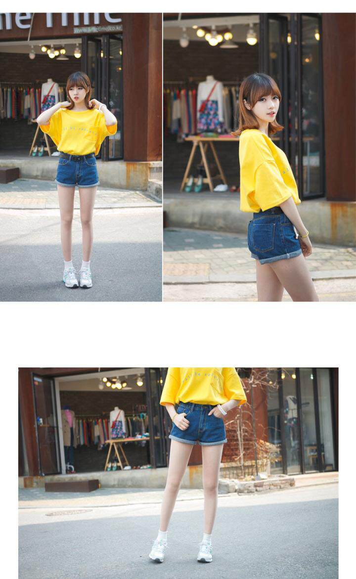 style(one) Women's large size Korean version of Slim waist A word was thin loose curling denim shorts shorts