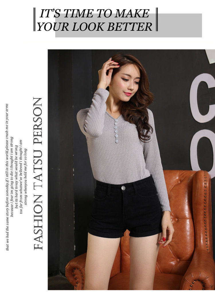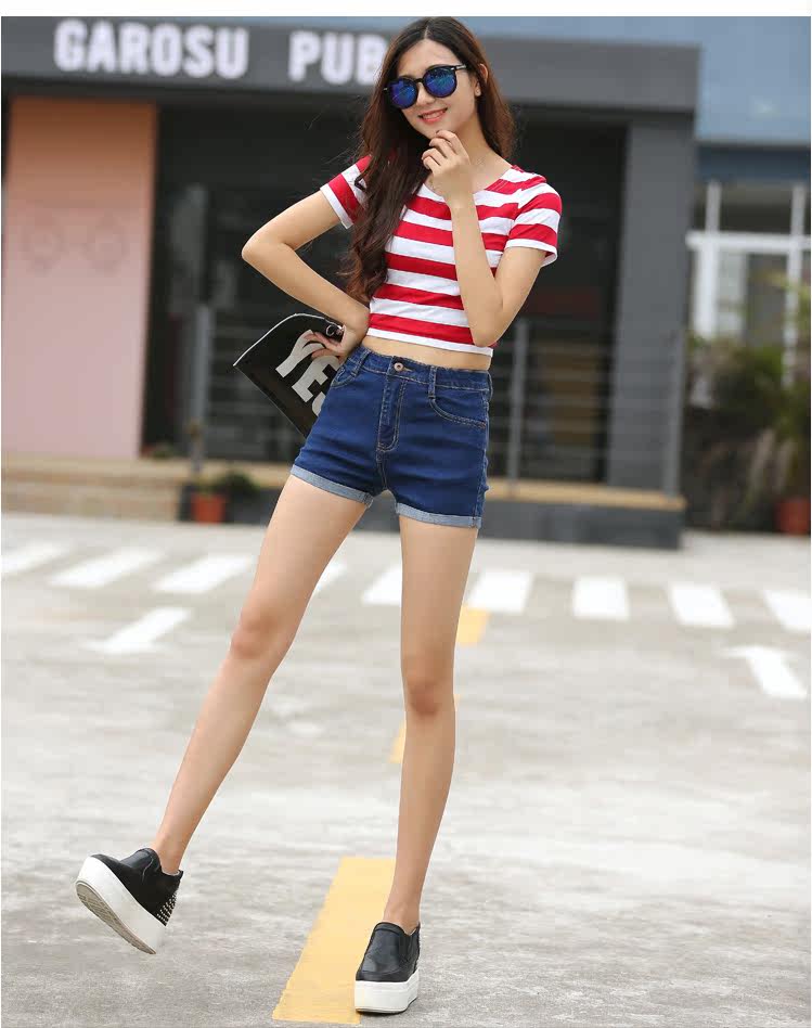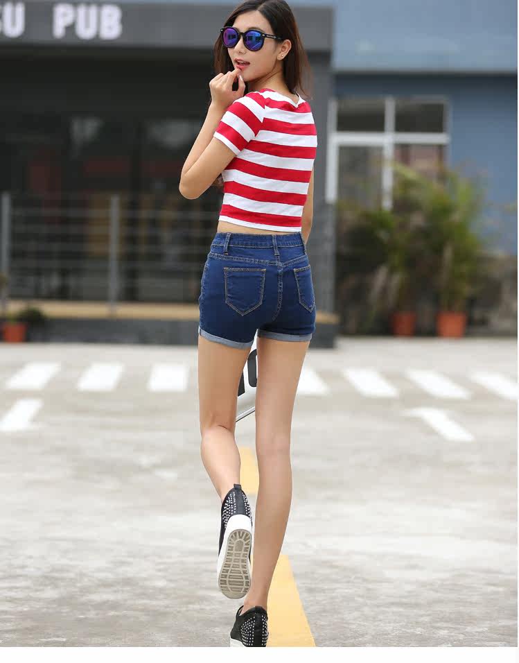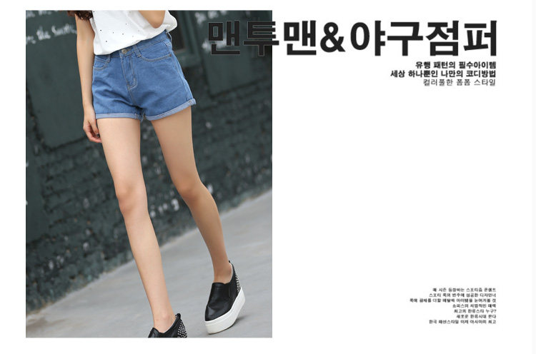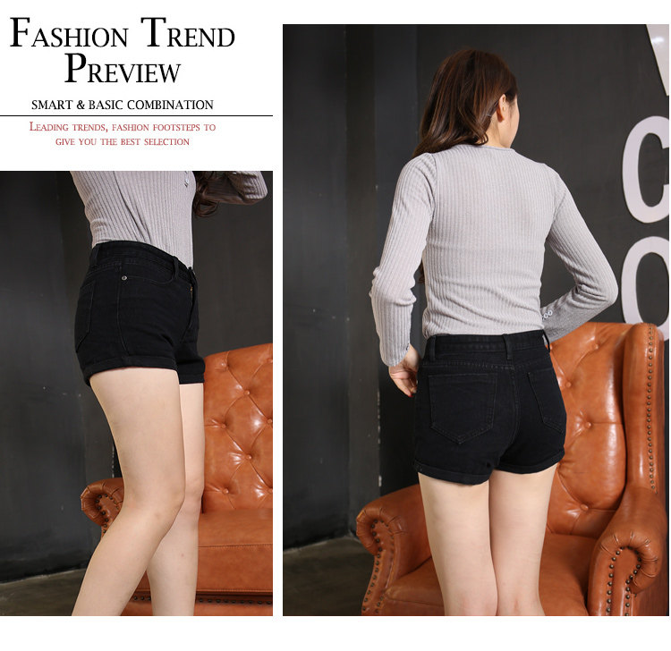 style(three)Women's high elastic big yards Slim thin light-colored curling waist denim shorts shorts