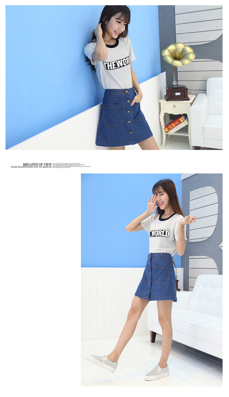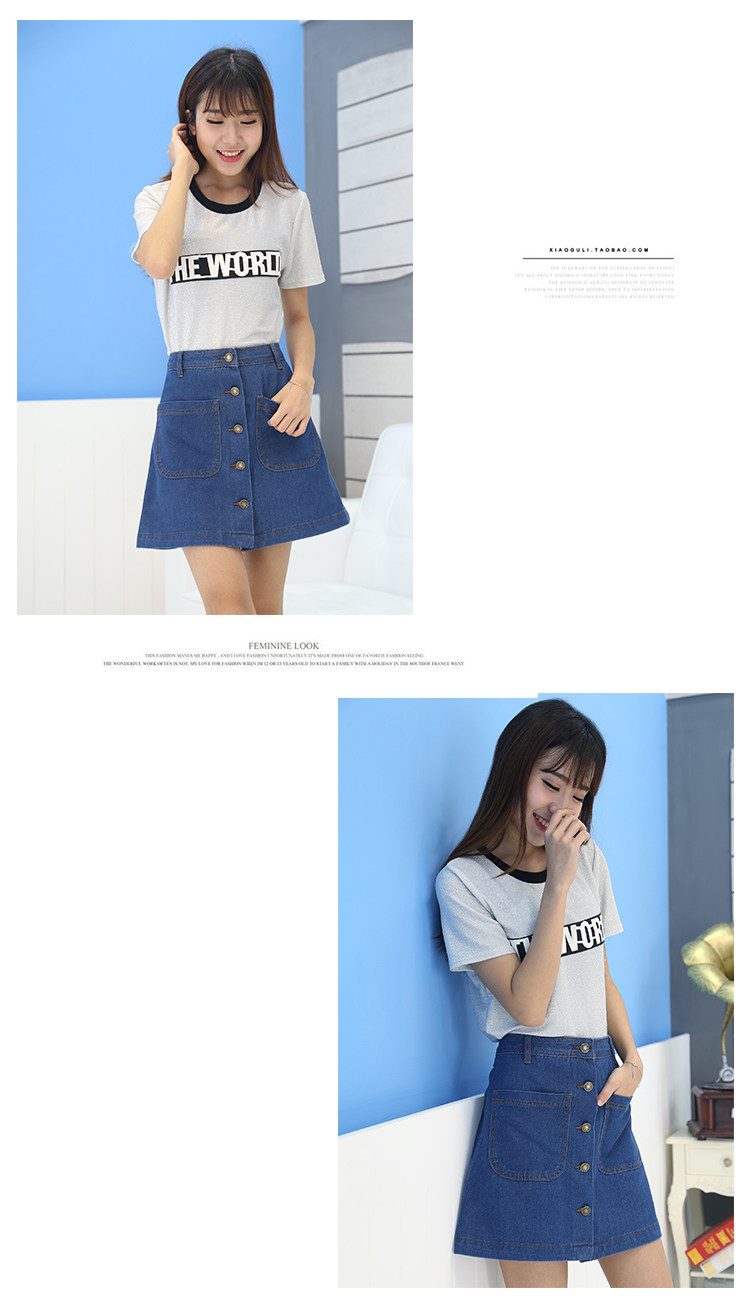 Women yards significant lanky Korean Slim washed denim skirt waist bust A word