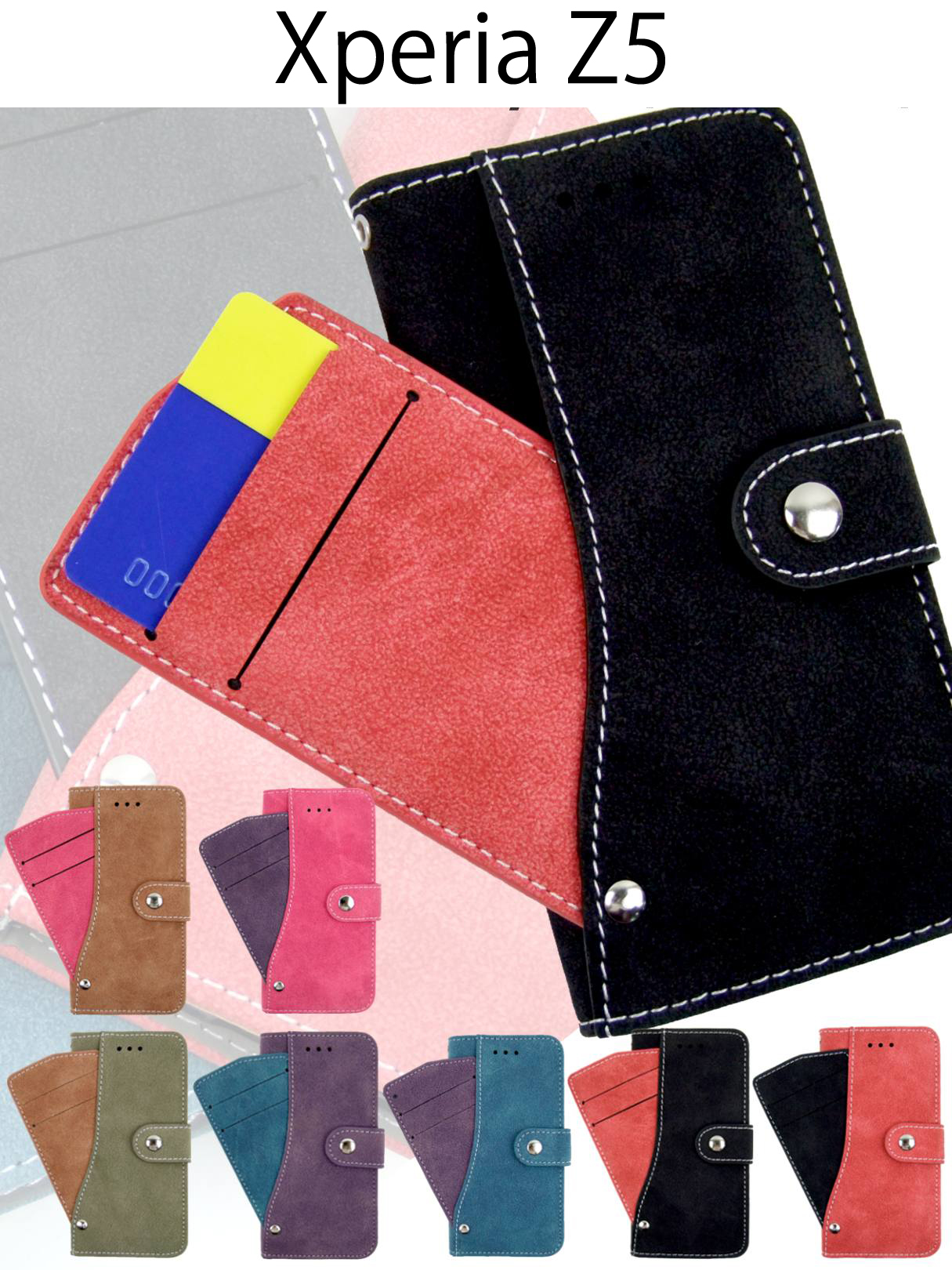 ◆手帳型iPhoneケース◆手触りのいいスウェード風素材の手帳型iPhoneケースです。前面に収納された回転式のカードケースにより、他の手帳型ケースよりも多めのカードを収納できます。コンビニやちょっとしたお出かけには便利。カードケースを振り出した状態ならicカードも安定して使用できそうです。ボディとカードケースがツートンカラーになっており、選べる7パターンラインナップ全7色PUレザーとは、「ポリウレタンレザー」の略称になります。素材としては、柔らかくしなやかで、肌の様な風合いがあり、より本革(天然皮革)に近い質感があります。疑似本革として、最高級にあたります。弾力性、柔軟性が高く、スマートフォンケースに適している素材です。通気性があり、撥水性も高いのでメンテナンスが非常に簡単です。お手入れについて(PUレザーは水分に弱いのでお手入れの基本は乾拭きでお願い致します。)※ご利用のモニター、ディスプレイにより若干色味に差がある場合がございます。ご了承ください。※商品の生産時における装飾等は海外にて手作業で行っており、多少の差異がある場合がございます。ご了承ください。
